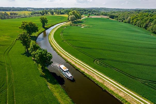 Während der Fahrt entlang des Oberlandkanals begleitet der Schiffskapitän die Gäste mit einem Kommentar. An Bord können heiße und kalte Getränke vom Buffet erworben werden.