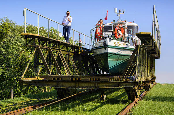 - Das war Großvater Jan, der die Inspiration und den Anfang für den Namen unseres Unternehmens gab. Während er Touristen transportierte, erzählte der Großvater leidenschaftlich über einen Ort, an dem Schiffe über Wiesen fahren. Zum Abschied würde er gerne seine geliebten geneigten Ebenen grüßen. „Mit dem Schiff über Wiesen“ - diese Worte bleiben für immer in unseren Herzen.
